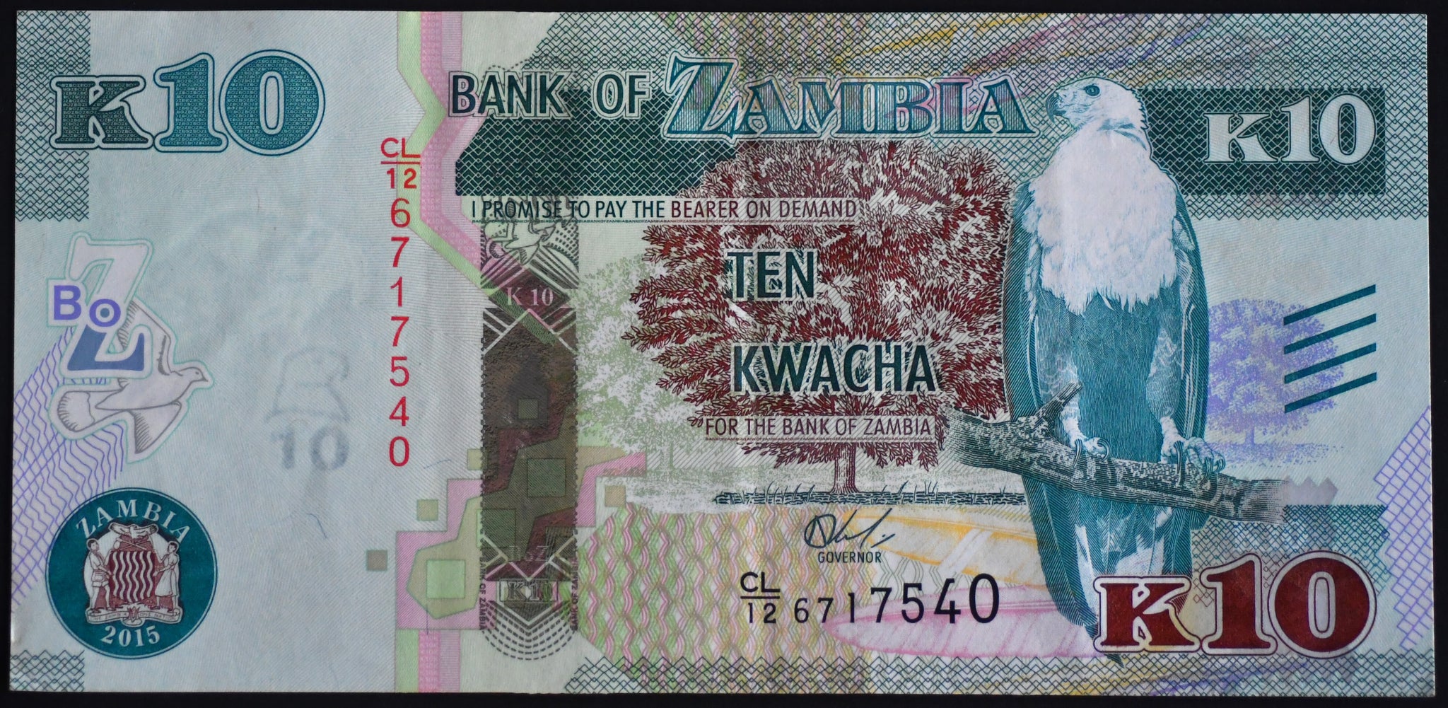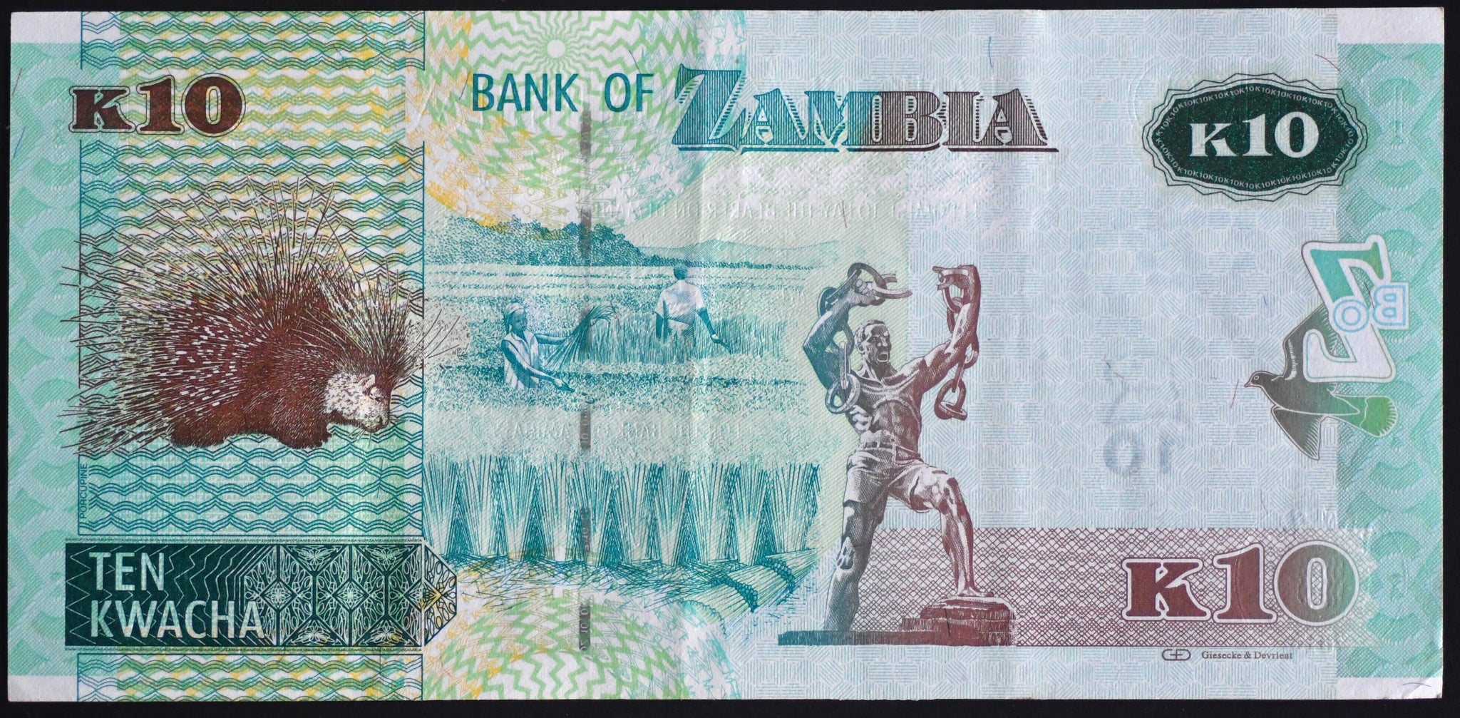 Zambia 10 Kwacha Banknote - Thick Security Strip Edition