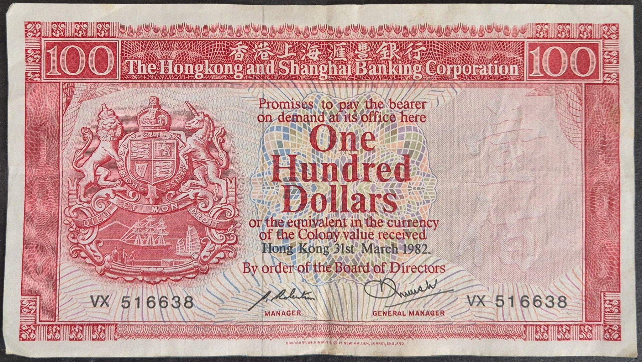 Hong Kong 100 Dollar Banknote HSBC 1982