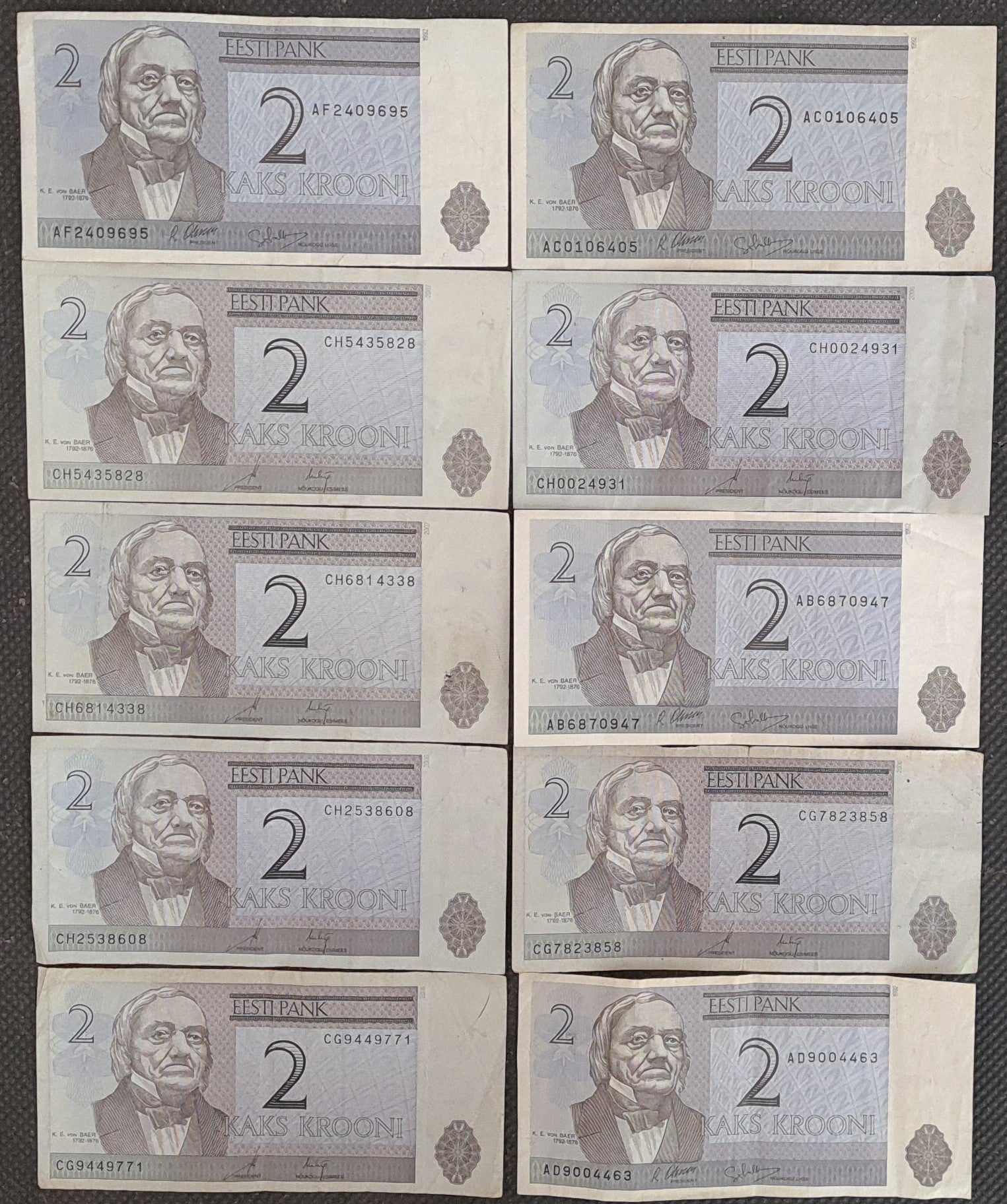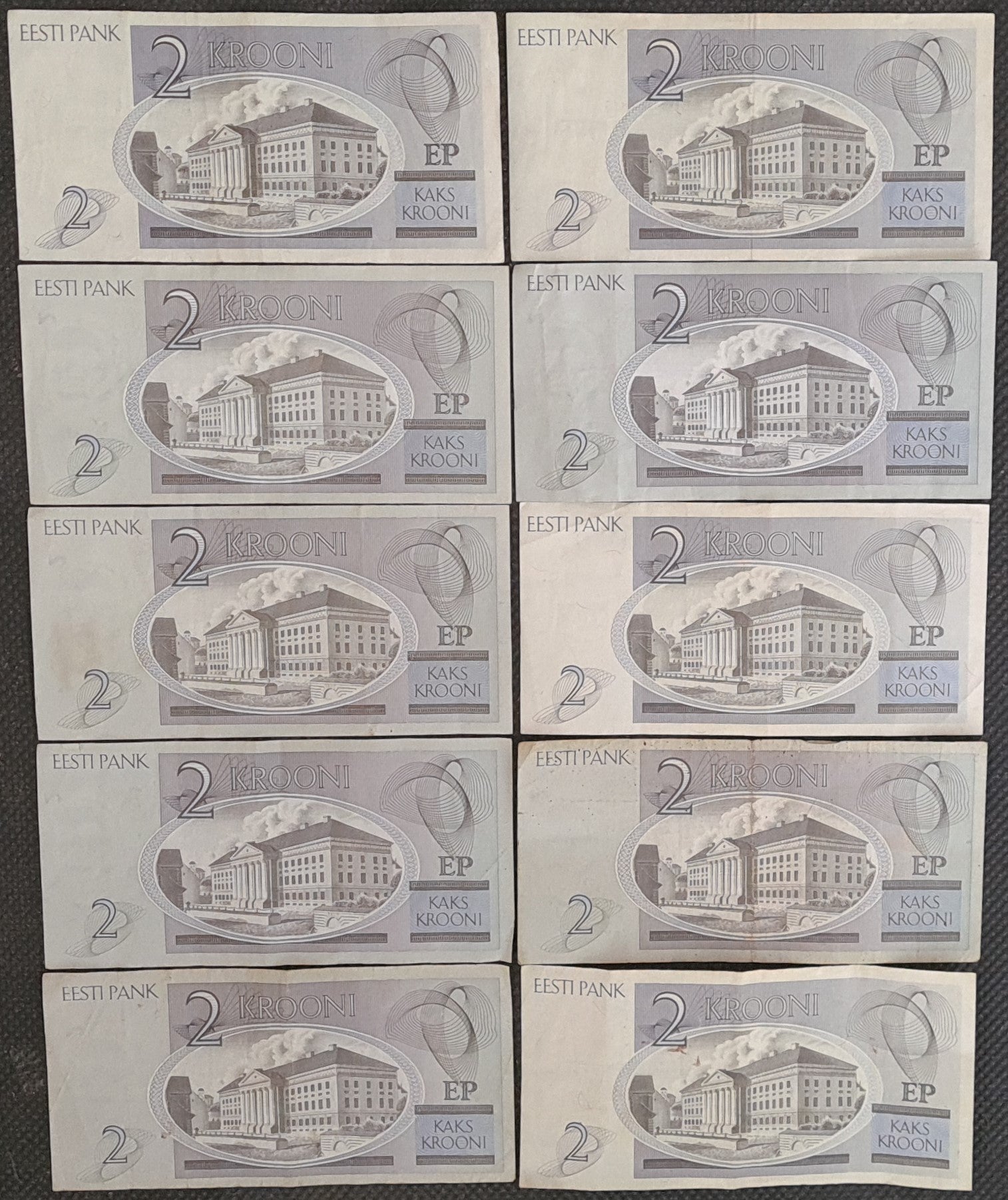 10 x Estonia 2 Krooni Banknotes - Circulated Notes