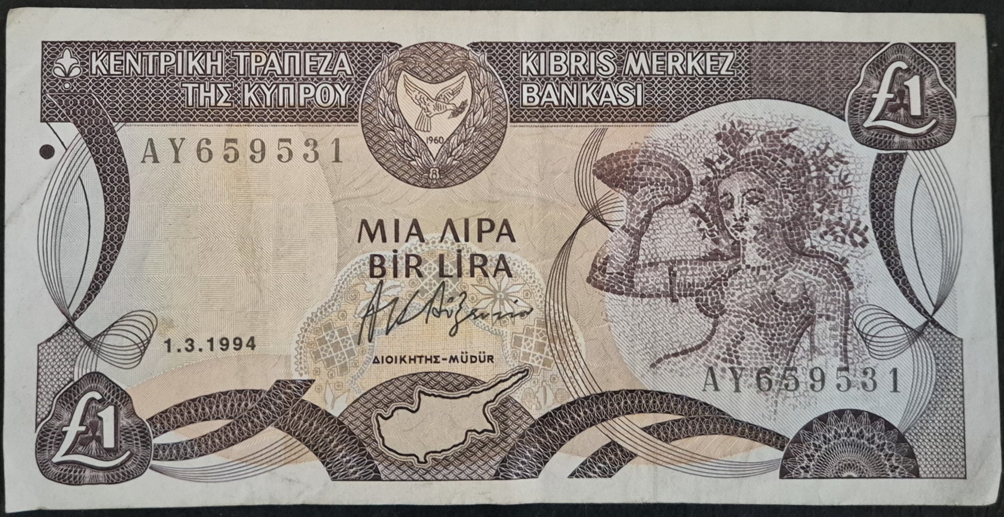 Cyprus 1994 One Pounds Banknote (Circulated)